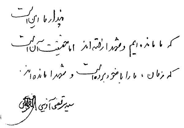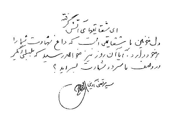 حرگفت : « من از آنان كه برای شما نامه نوشته اند نیستم . ما مأموریم كه از شما جدا نشویم مگر آنكه شما را به كوفه نزد عبید الله بن زیاد برده باشیم .» .. در اینكه لشكریان حر تاخته اند وبر سر راه او صف بسته اند ، تردید نیست. امام می فرماید : « ثكلتك امك! ما ترید مِنّی؟ ـ مادرت در عزای تو بگرید، از من چه می خواهی ؟ » آنچه حر بن یزید در جواب امام گفته ، سخنی است جاودانه كه او را استحقاق توبه بخشیده است . روزنه ای از نور است كه به سینه حُر گشوده می شود و سفره ضیافتی است كه عشق را به نهانخانه دل او میهمان می كند. حُر گفت :« هان والله ! اگر جز تو عرب دیگری این سخن را بر زبان می آورد ، در هر حال، دهان به پاسخی سزاوار می گشودم . كائناً ما كان : هر چه باداباد... اما والله مرا حقی نیست كه نام مادر تو را جز به نیكوترین وجه بر زبان بیاورم .» این سخن ریحانی از ریاحین بهشت است كه ازگلبوته ادب حُر برآمده .این سیاره سرگردان حُر است كه در مدار كهكشانی اش با شمس وجود حسین اقتران می یابد و لاجرم ، جاذبه عشق او را به مدار یار می كشاند .وقتی زمین ، یک بار به دور خورشید طواف می کند ، سال نو می شود...حسین...! به والله تو کم تر از خورشید نیستی!چه می گویم..! اصلا " بکم فتح الله وبکم یختم...! وبک ینزل الغیث وبکم یمسک السما ان تقع علی الارض الا باذنه وبکم ینفس الهم... ویکشف الضر..."حسین! حر ّ عاقبت به مدارش رسید....